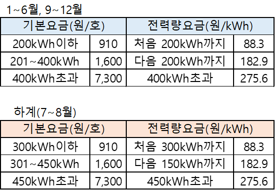 하계요금표는 주거용 주택용에 한하여 적용됩니다.