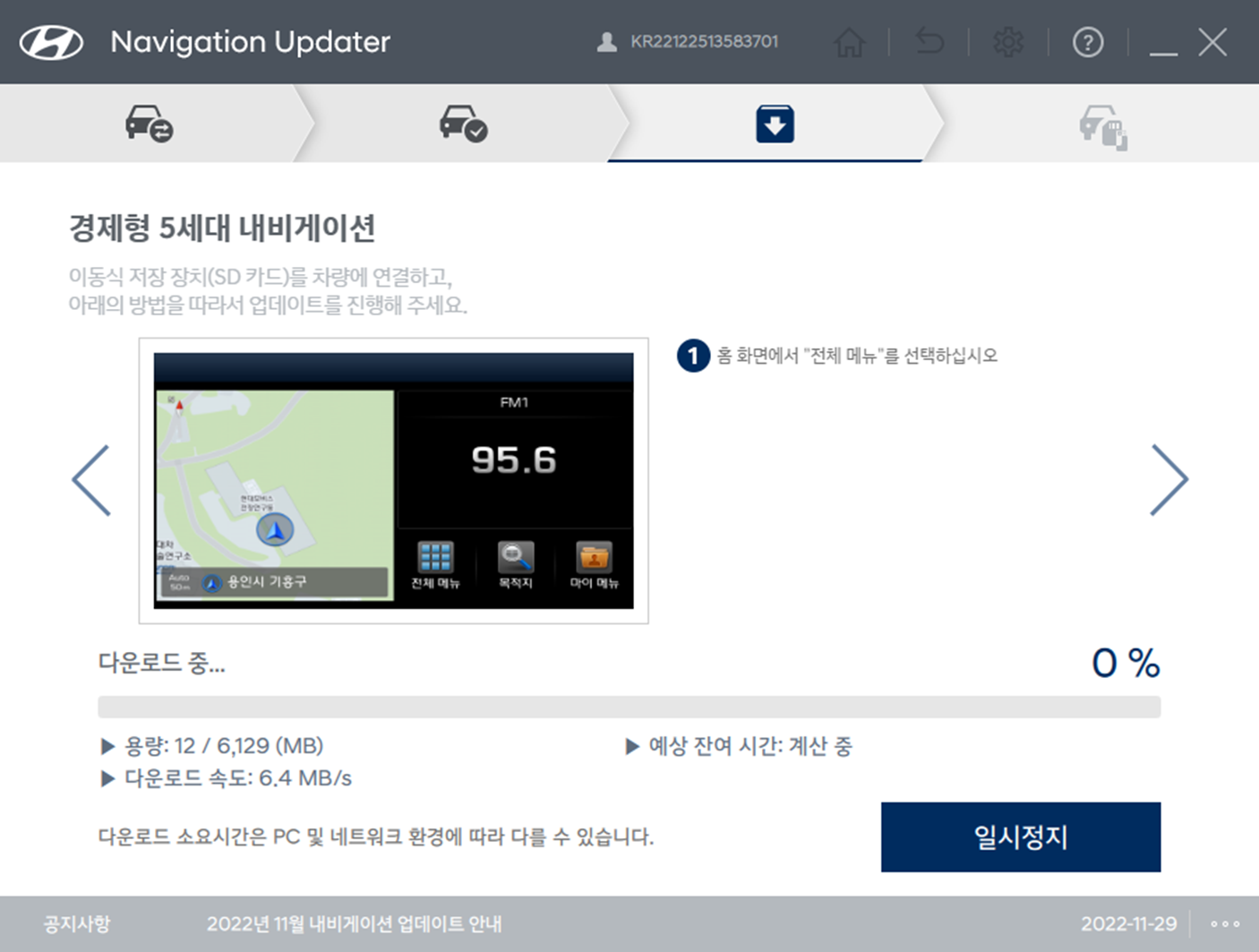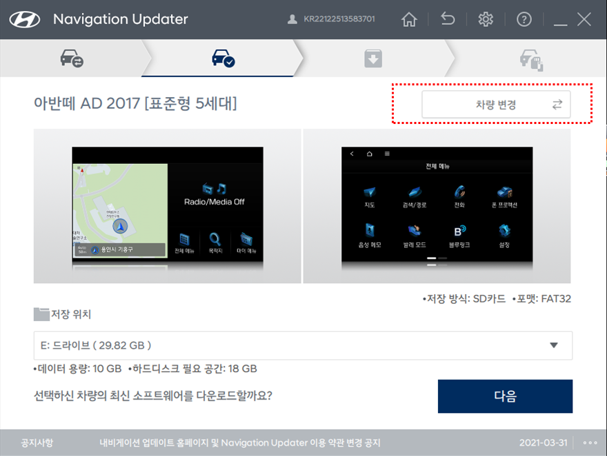 내비게이션 업데이트 프로그램활용해서 업데이트 시작