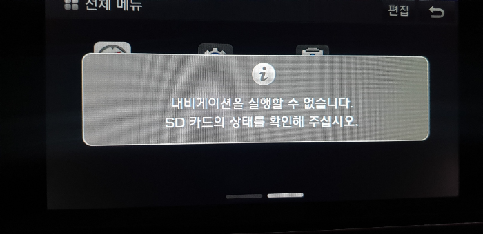 - 만일 내비게이션 업데이트가 잘못되었거나, 다음과같은 메세지가 발생하게 된다면 업데이트과정에서 잘못된 부분이 있는것이니 처음부터 다시 시작해주세요.