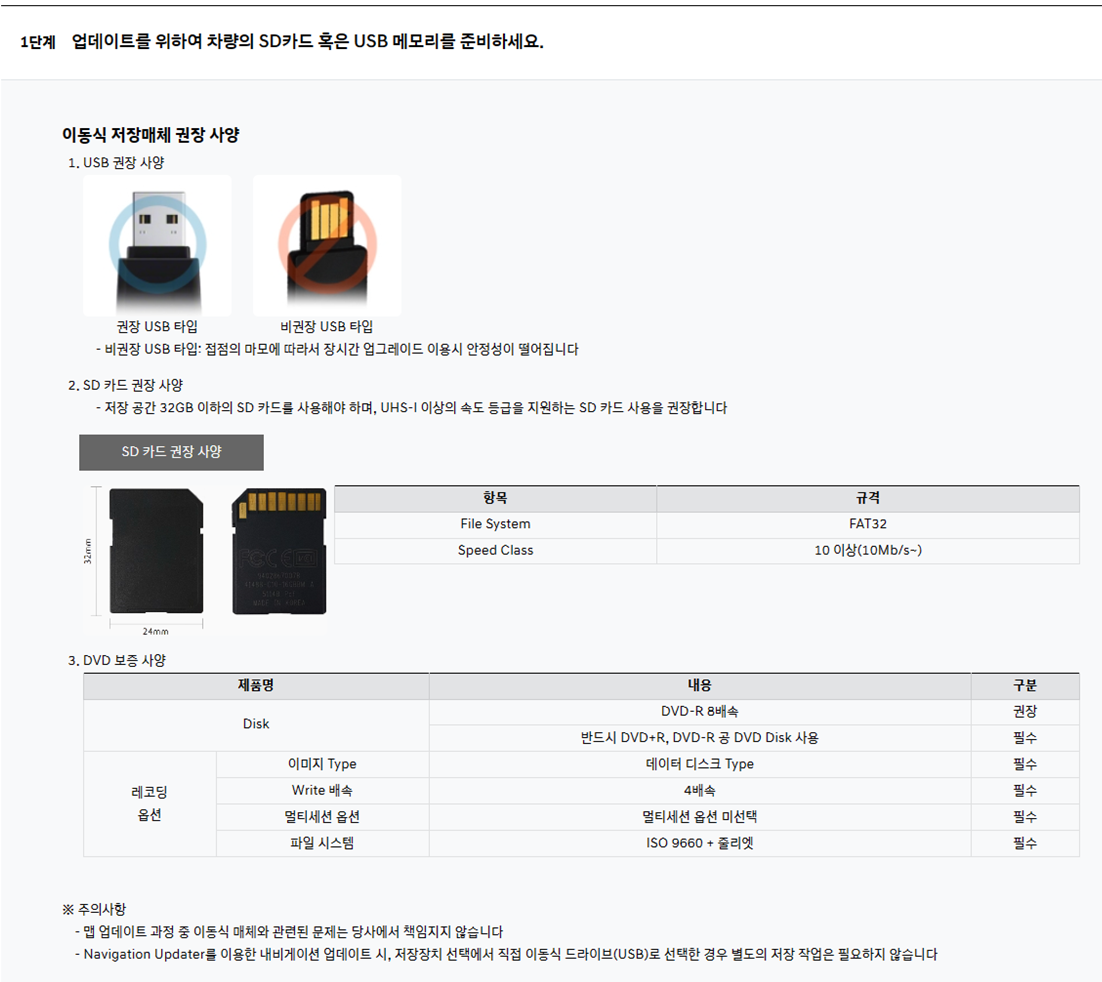 - 업데이트 하는데에 SD카드에 관련된 권장사양과 보증사양등이 나와있는데 우리는 기존에 있는 SD카드를 이용하여 업데이트를 할 예정이므로 그냥 아~ 이렇구나 정도로 이해하시고 다음으로 넘어가시면 되겠습니다.
