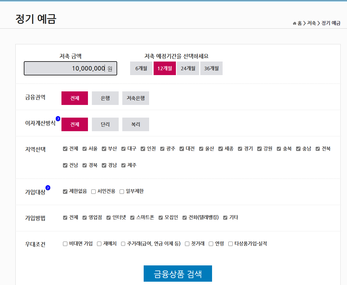 예적금 검색하는 방법
