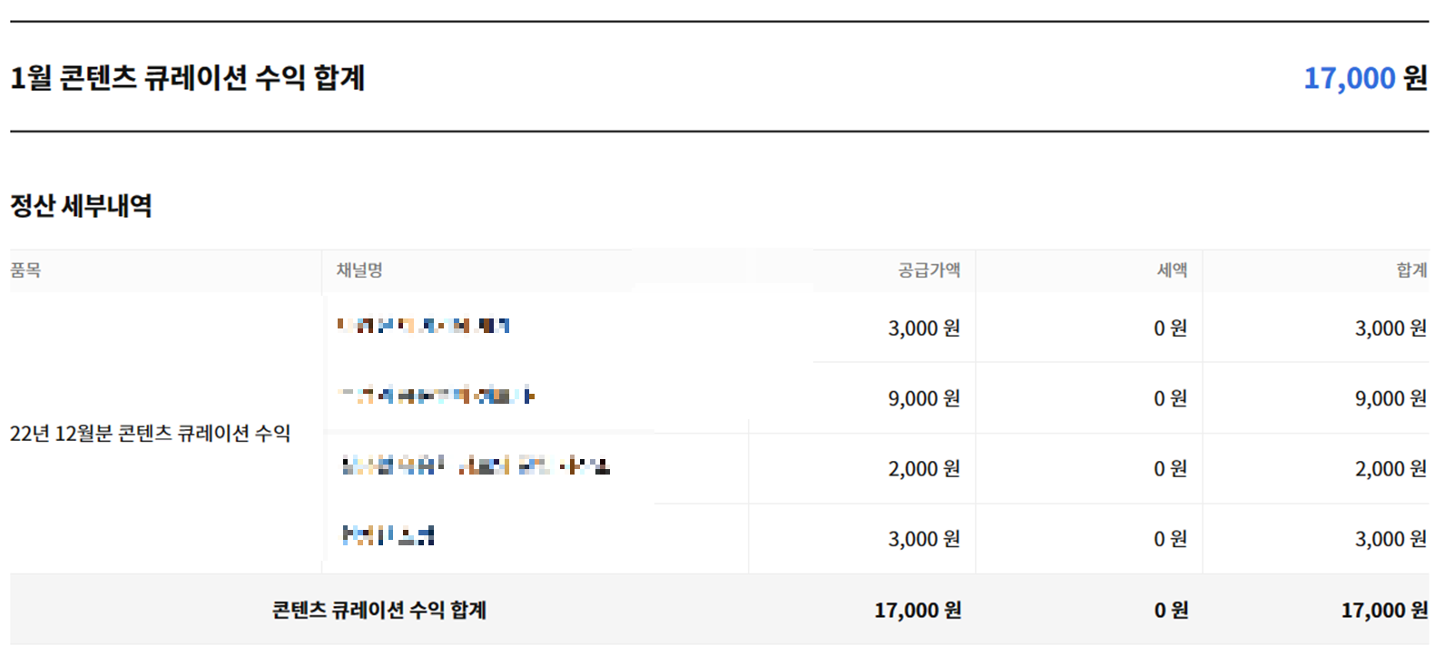 첫 번째로는 2달 연속으로 9,000원의 수익을 안겨준 2번째 채널입니다.