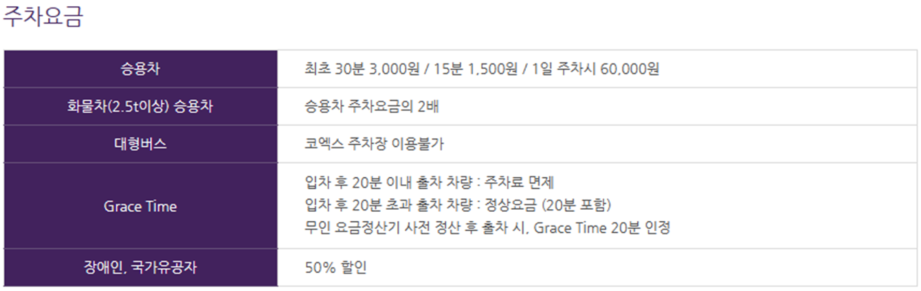 " 코엑스 기본 주차비용"