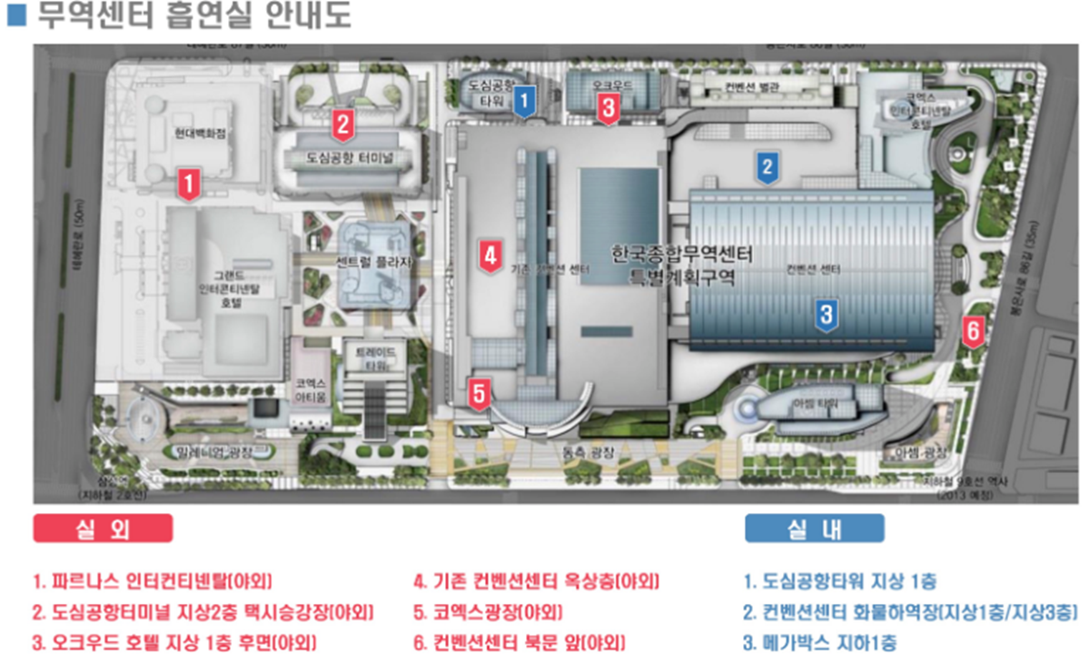 다음은 코엑스의 흡연구역 안내입니다.