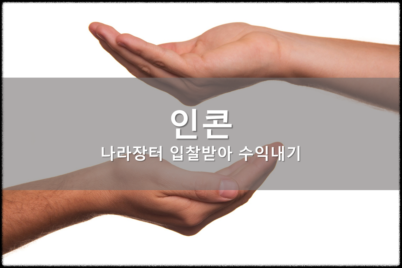 여섯 번째 부업은 집에서도 할 수 있고 초기세팅만 잘해놓으면 다음부터는 하루 5~10분 정도만 투자하면 되는 인콘- 조달청 부업입니다. 초기 투자금 (설정을 위한 기기구입 등)이 들어가기는 하지만, 지속적으로 하면 인콘 측에서 이벤트로 열정페이를 지급해 주어 반년정도면 투자금을 회수할 수 있으며, 그중에 나라장터에서 입찰에 성공하게 되면, 입찰금액의 5%를 수익으로 가져올 수 있는 굉장히 매력적인 부업입니다. 나라장터 입찰금액은 크다 보니 클릭한 번에 1억원이 입찰되면 한번에 500만 원의 수익을 가져올 수 있습니다.