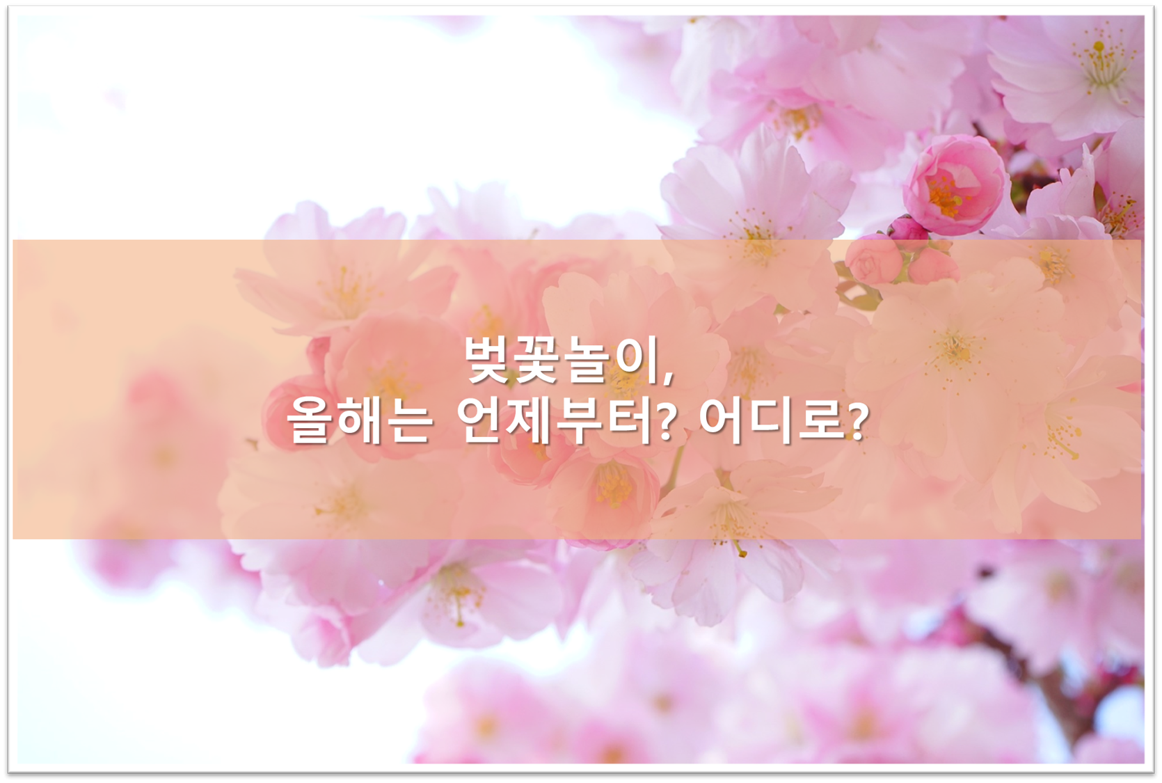 오늘은 이맘때쯤이면 어김없이 봄이왔음을 알려주는 벚꽃놀이를 알아보려 하는데요, 올해는 언제부터 시작되는지 그리고 벚꽃놀이 명소는 어디인지 한번 알아보도록 하겠습니다.