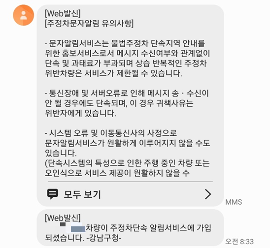 마지막으로 문자 알림이 오게 되면서 서비스가입에 다시 확인하게 됩니다. 주정차문자 알림에 대한 유의사항도 함께 오게 되니 시간이 되신다면 읽어보시면 좋겠습니다.