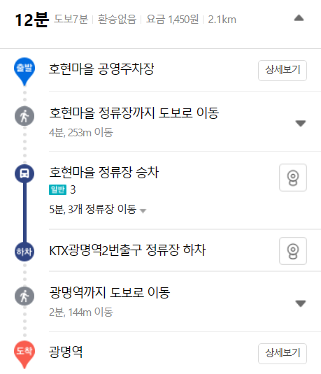 호현마을 공영주차장에서 약 250m 이동하시면 버스정류장이 있는데, 버스를 탑승하시어 3 정류장을 이동하시면 광명역에 바로 도착하실 수 있습니다.